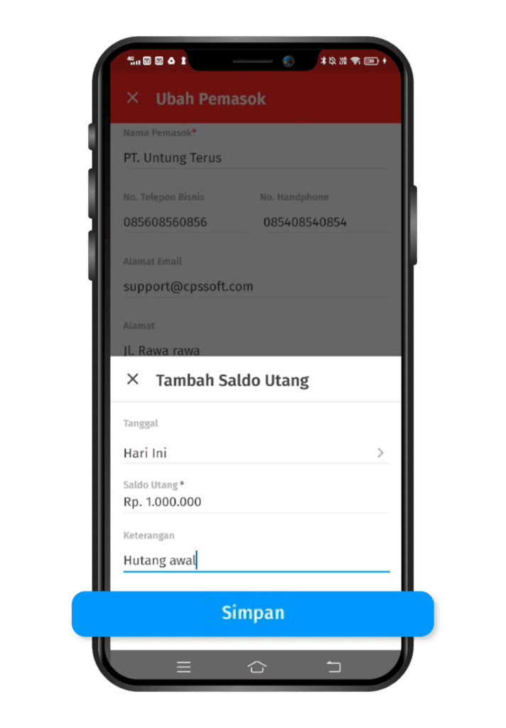 7. Nilai Saldo Hutang yang telah berhasil Anda input akan ditampilkan pada bagian Hutang.