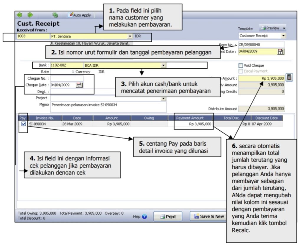 2. Isi formulir Sales Receipt dengan mengikuti petunjuk pada gambar berikut ini: