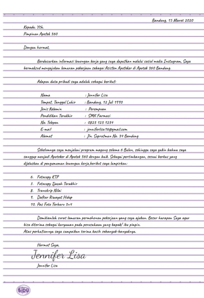Surat Lamaran Kerja Tulis Tangan Ini Contoh yang Baik dan Benar